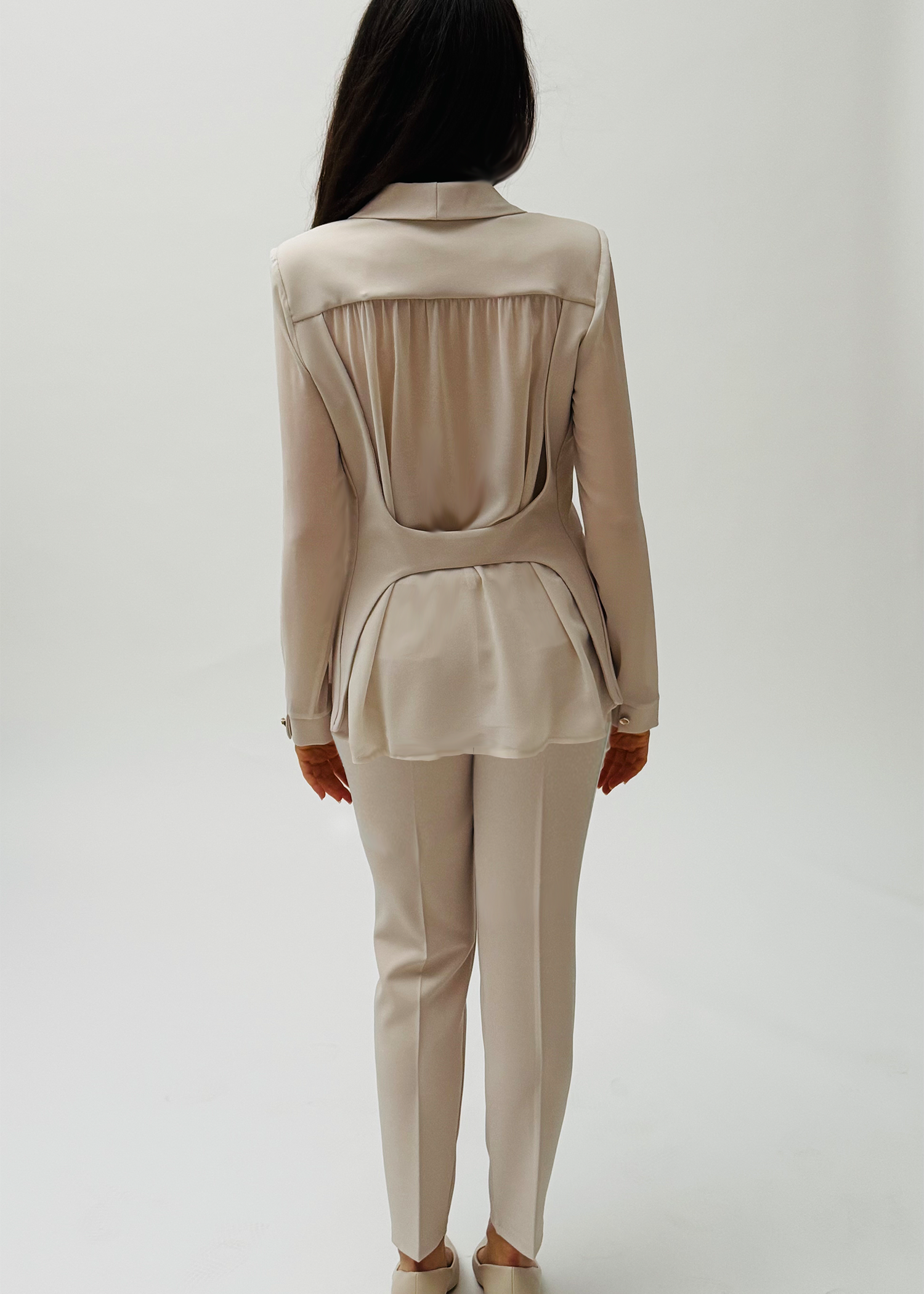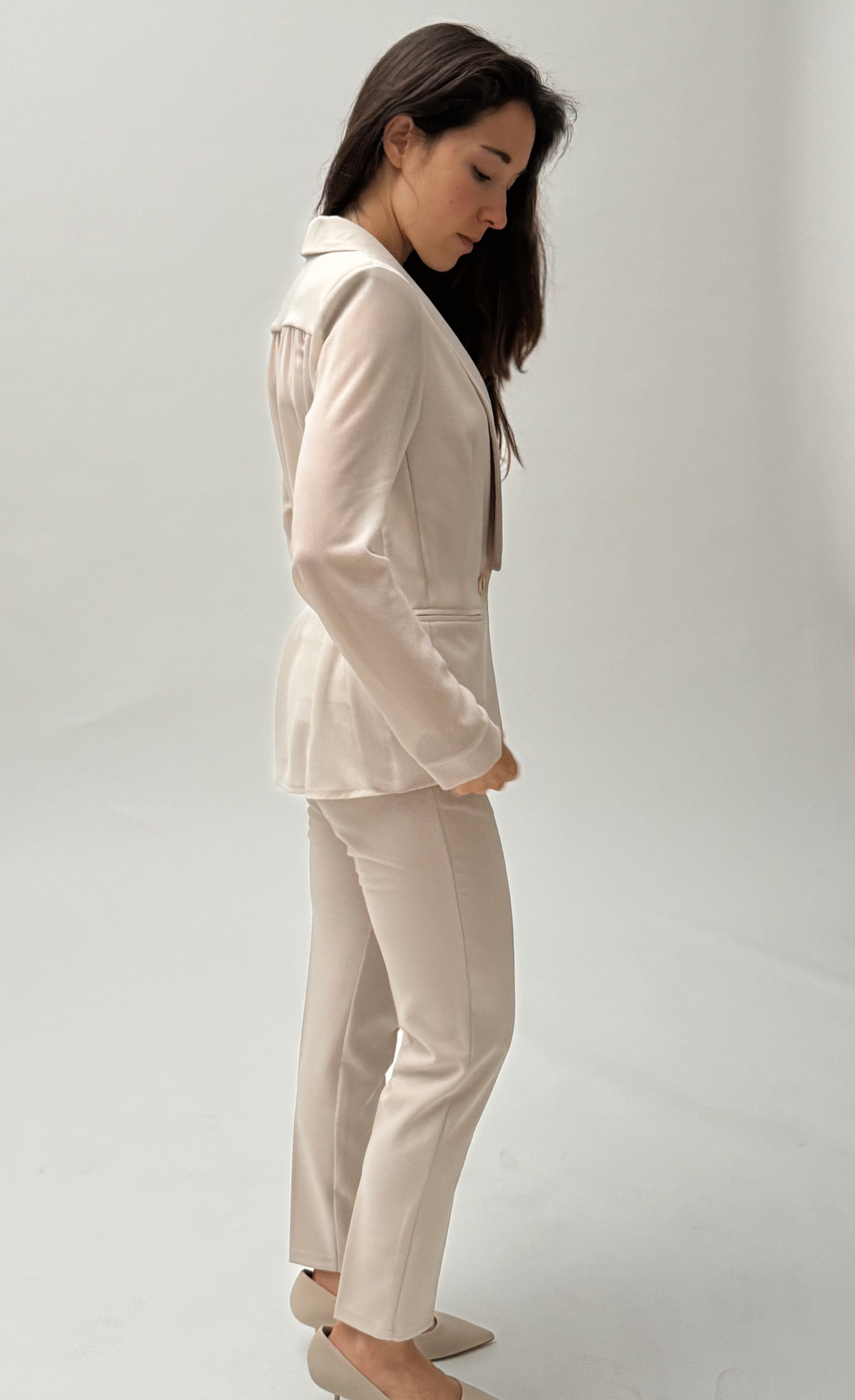 Looking for a statement outfit that speaks for itself? This suit is your minimalist declaration of confidence. The lightweight yet structured blazer with softer fabric sleeves and tapered trousers creates a flawless silhouette, perfect with both heels and sneakers. The flexible fabric moves with you, while the color radiates freshness and modernity.
