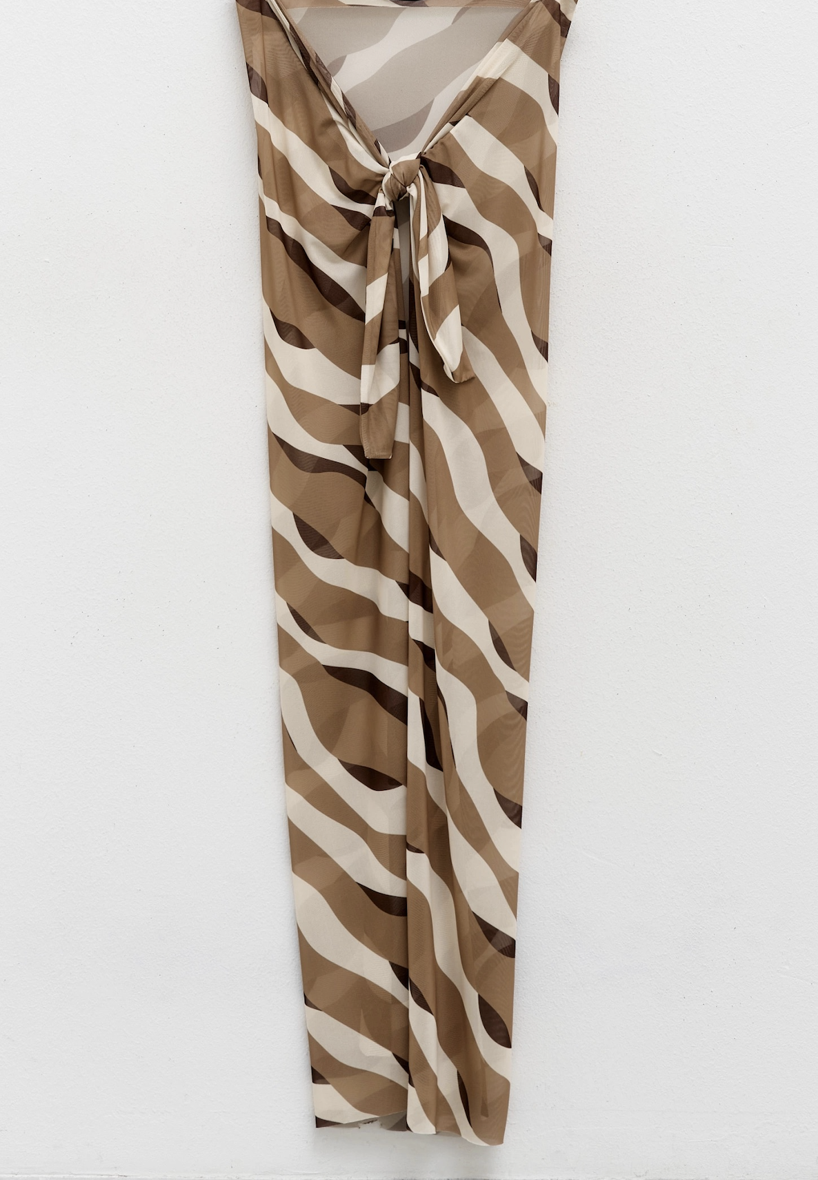 92% polyester, 8% elastane   This long printed tulle skirt is a perfect choice for the warmer season. The soft, stretchy fabric gently hugs the body, while the light texture and bold wavy pattern create a distinctive and dynamic look. Pair it with a matching top or bodysuit from the same collection, or style it with contrasting pieces for a casual or holiday outfit. Style: Long, lightweight and semi-sheer tulle skirt with an expressive print. Features a front tie at the waist that adds a playful and feminine touch