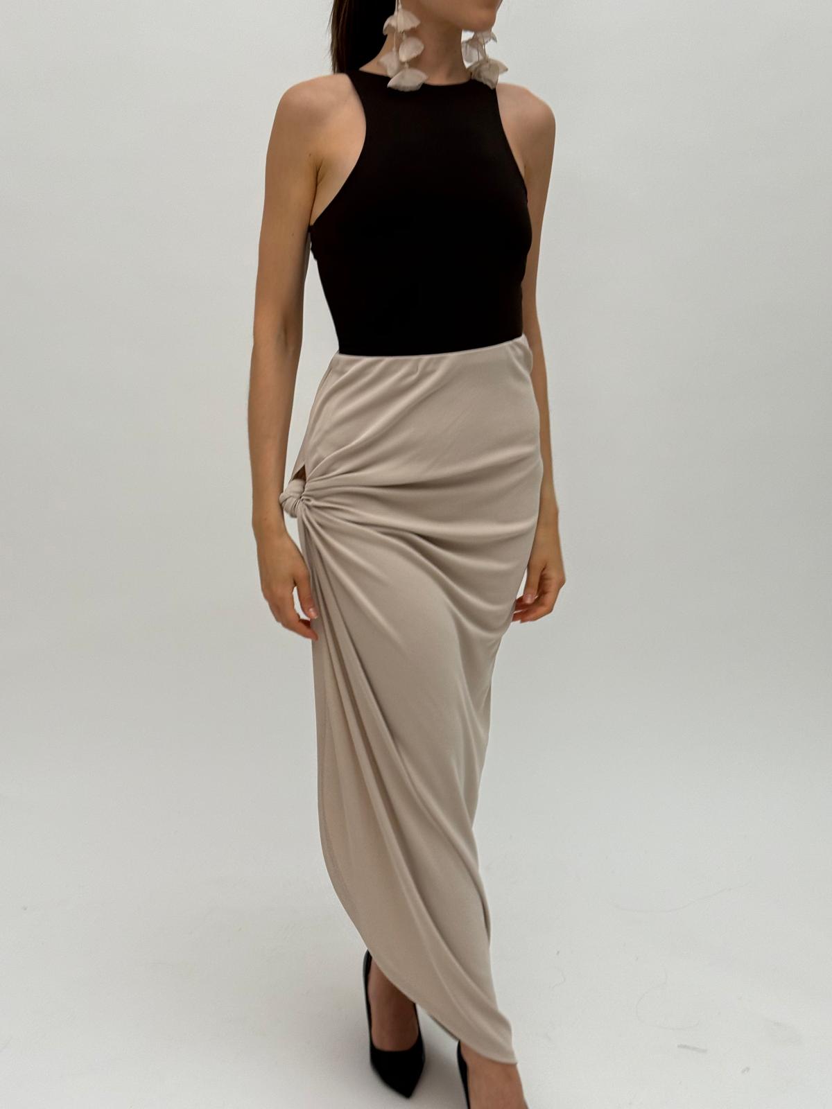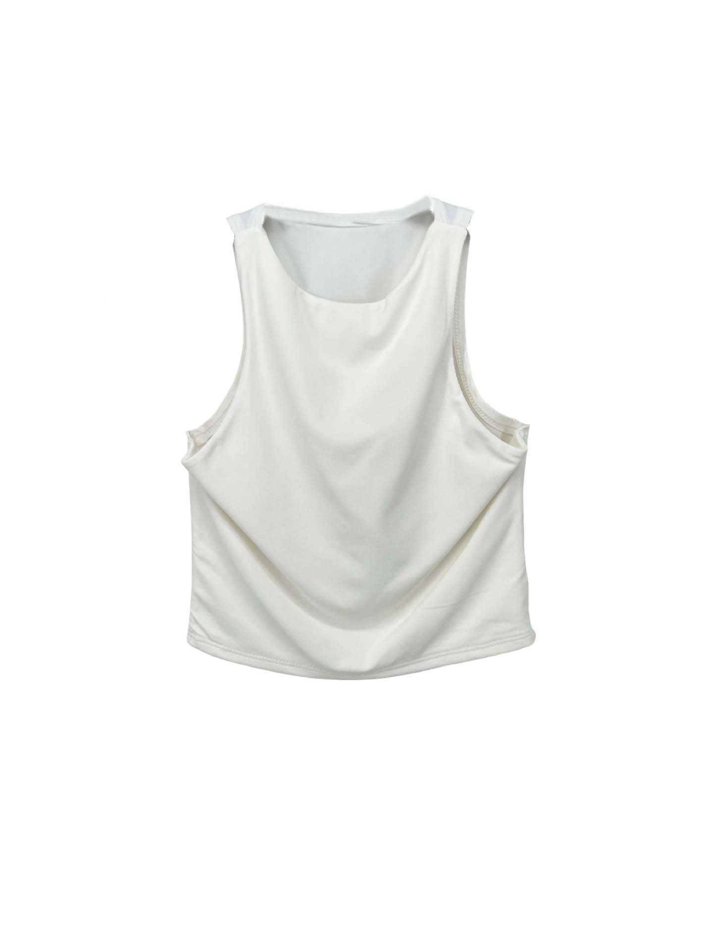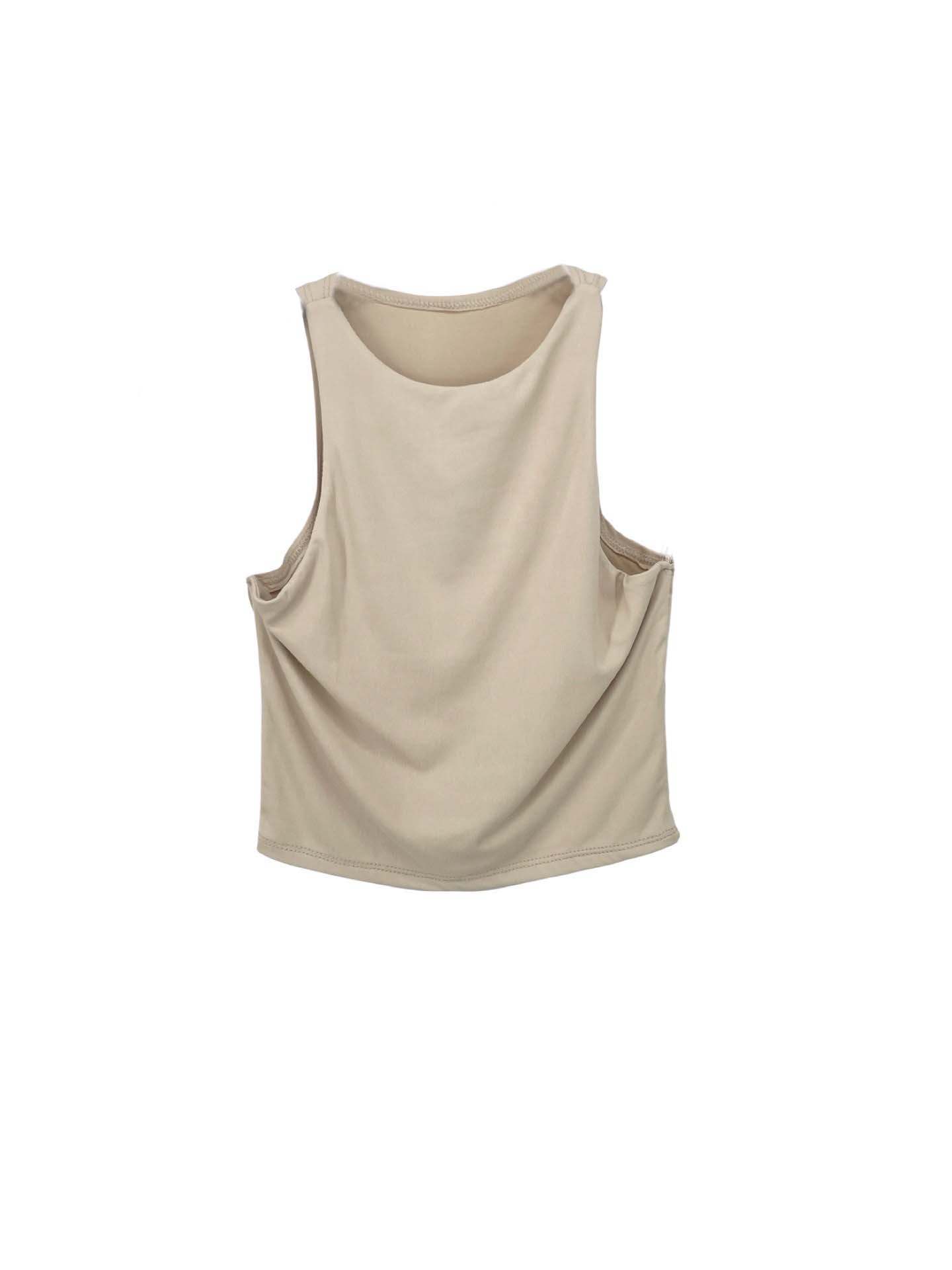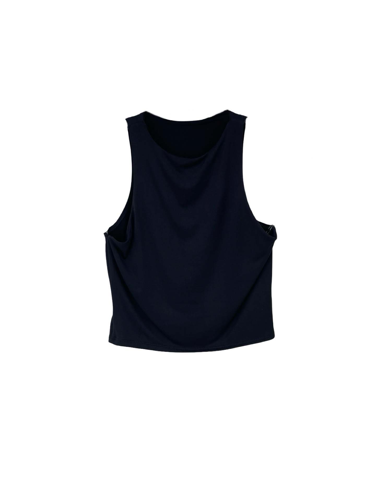 A timeless essential with a sleek, modern cut. This black sleeveless top features a high neckline and racer-front silhouette, designed to highlight the shoulders and collarbone. Crafted from a smooth, stretch fabric, it hugs the body for a flattering fit while remaining comfortable and breathable. The minimalist design makes it perfect for pairing with statement bottoms, evening skirts, or tailored trousers.