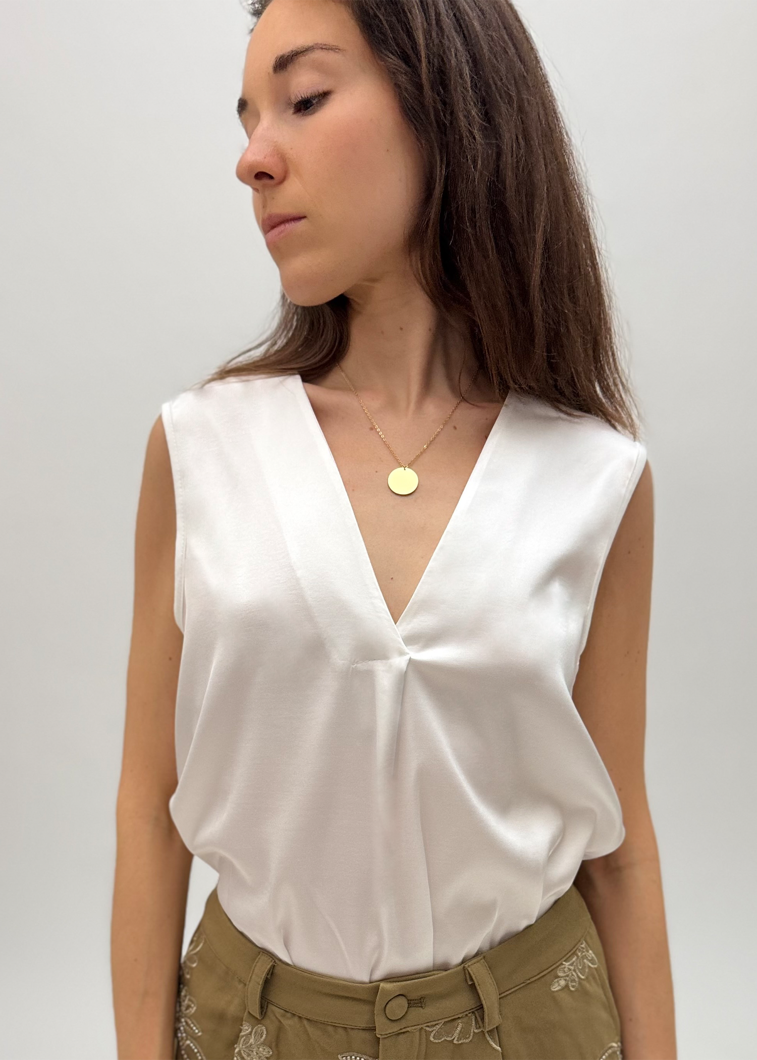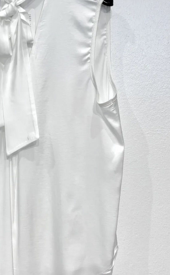 52% ecovero, 45% viscose, 3% elastane Design: Sleeveless with necktie detail Light, soft, and breathable stretch fabric Pairs perfectly with both trousers and skirts
