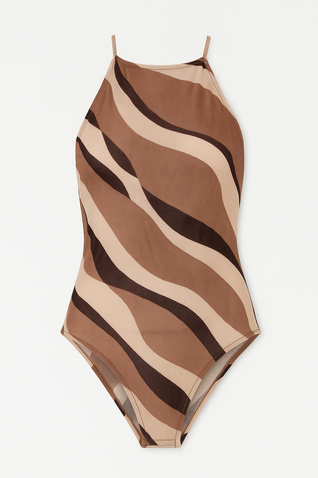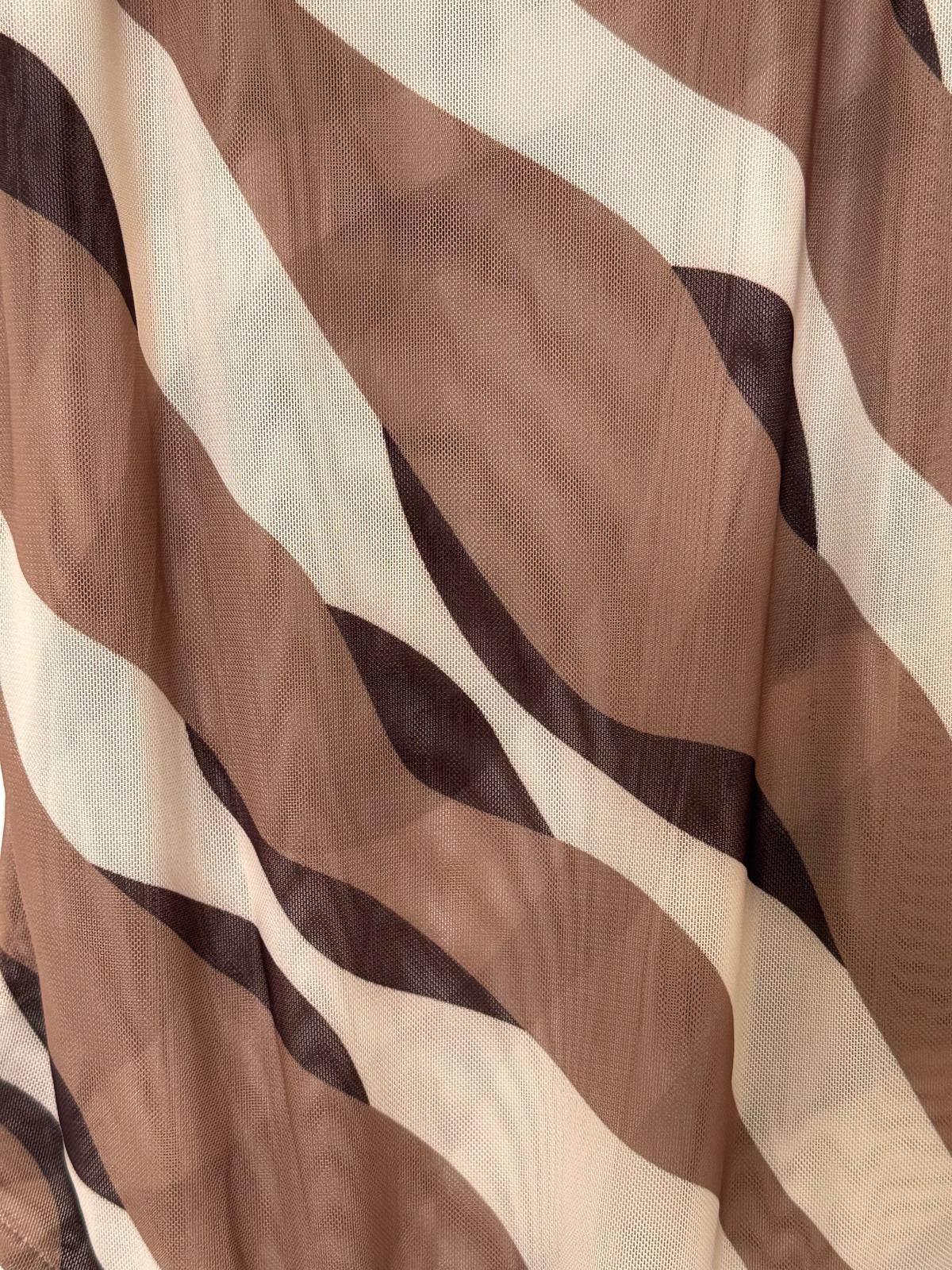 92% polyester, 8% elastane   This soft tulle top with an expressive print is a stylish choice for both everyday and evening looks. The lightweight, body-hugging fabric gently embraces the figure, while the colorful, wavy pattern adds a touch of originality and playfulness. Perfectly pairs with trousers, skirts, or shorts.   Style: Sleeveless, lightly fitted, stretchy and lightweight top