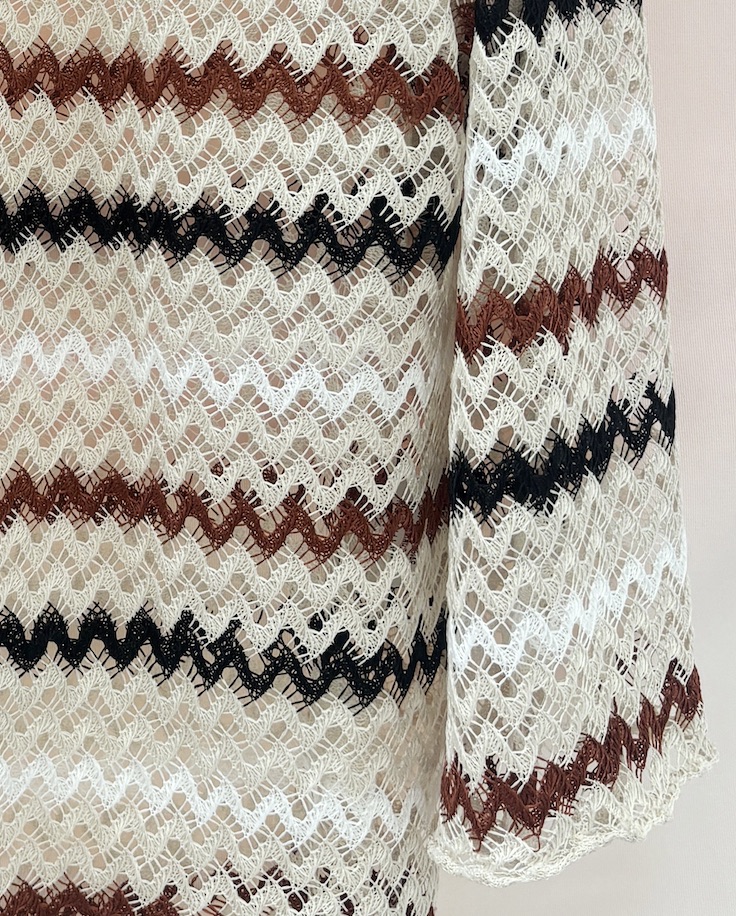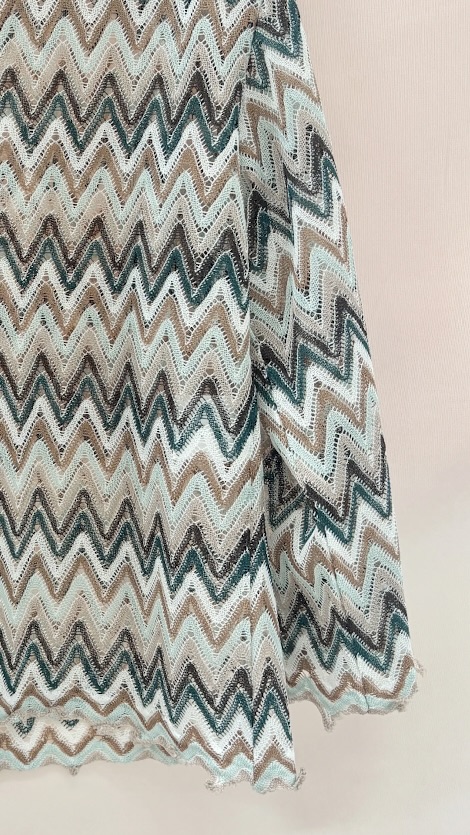 Bold yet elegant, this two-piece set brings style and comfort together effortlessly. Featuring a relaxed-fit blouse with 3/4 sleeves and flowing wide-leg trousers, the suit catches the eye with its soft zigzag pattern in pastel tones. The lightweight fabric drapes beautifully, offering freedom of movement and comfort. Ideal for warm weather, social events, or a refined everyday look, this outfit makes a statement without saying a word.